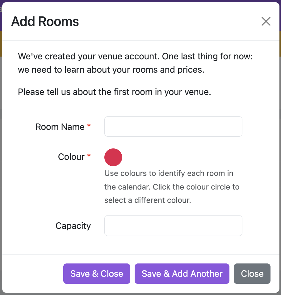 The next job after setting up a venue is to tell us about your rooms.