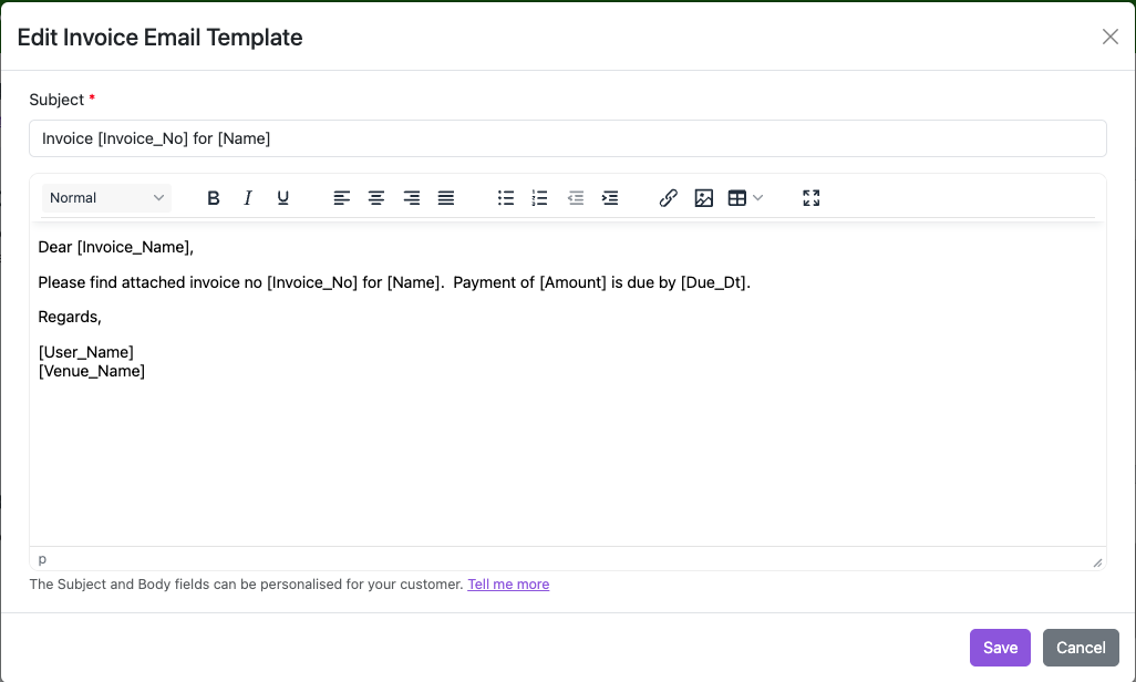 Invoice Email: Includes PDF attachment when emailing invoices to customers